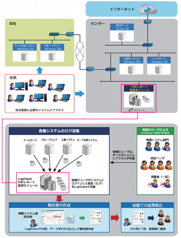 2ヶ月に1回、システム担当者が特権IDユーザのログインログをLogStare®(ログステア)で確認。