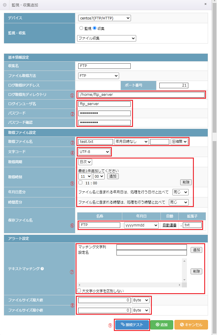 ※以下ではファイル収集-FTP-の場合の設定をご説明します。