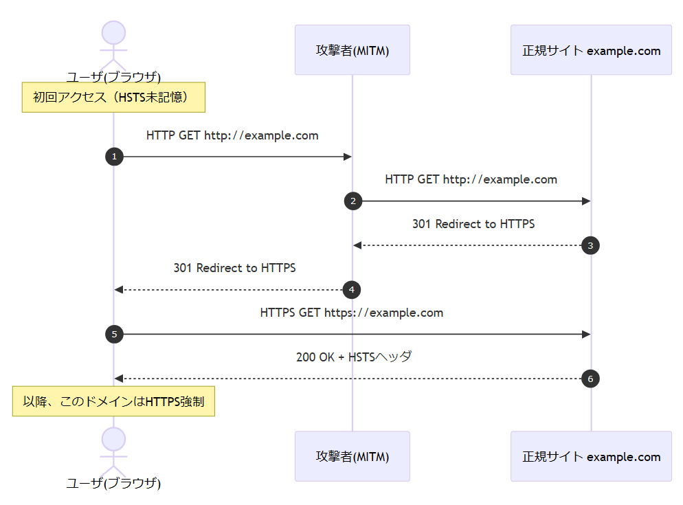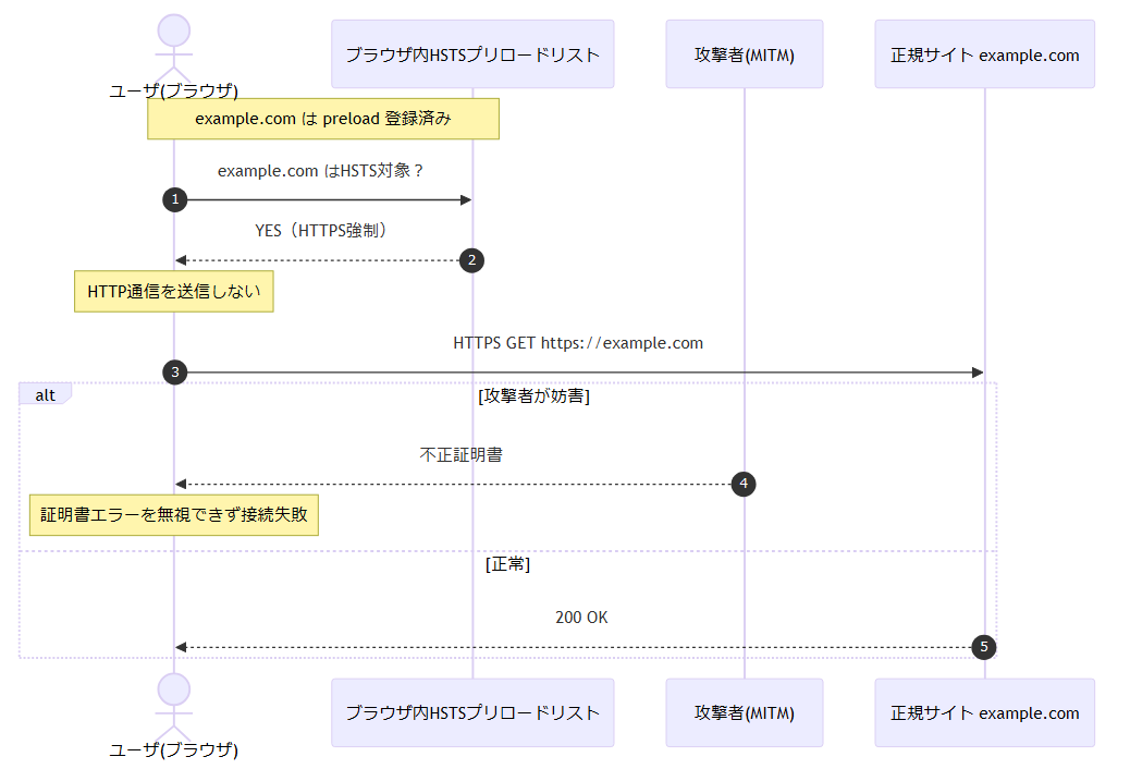 ただそれでは、HSTSヘッダを受け取っていない(HSTSの動作を理解していない)状態のブラウザを保護することができません。